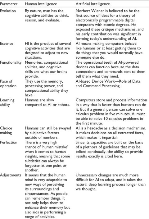 The following words will provide you with a basic understanding of what A. I am, as well as its history and various approaches used to build AI. AI stands for Artificial Intelligence and is defined as the ability of a machine, especially a computer, to mimic the intellectual processes of the human mind. These functions include learning, reasoning, problem-solving, and adaptation. The other type is HI, a natural HI involving emotions, creativity, and learning from experiences. Analysing the differences between AI and HI is essential for predicting the future evolution of AI and its impact on society. The purpose of this article is to demonstrate these forms of intelligence about several criteria to reveal their strengths and weaknesses.